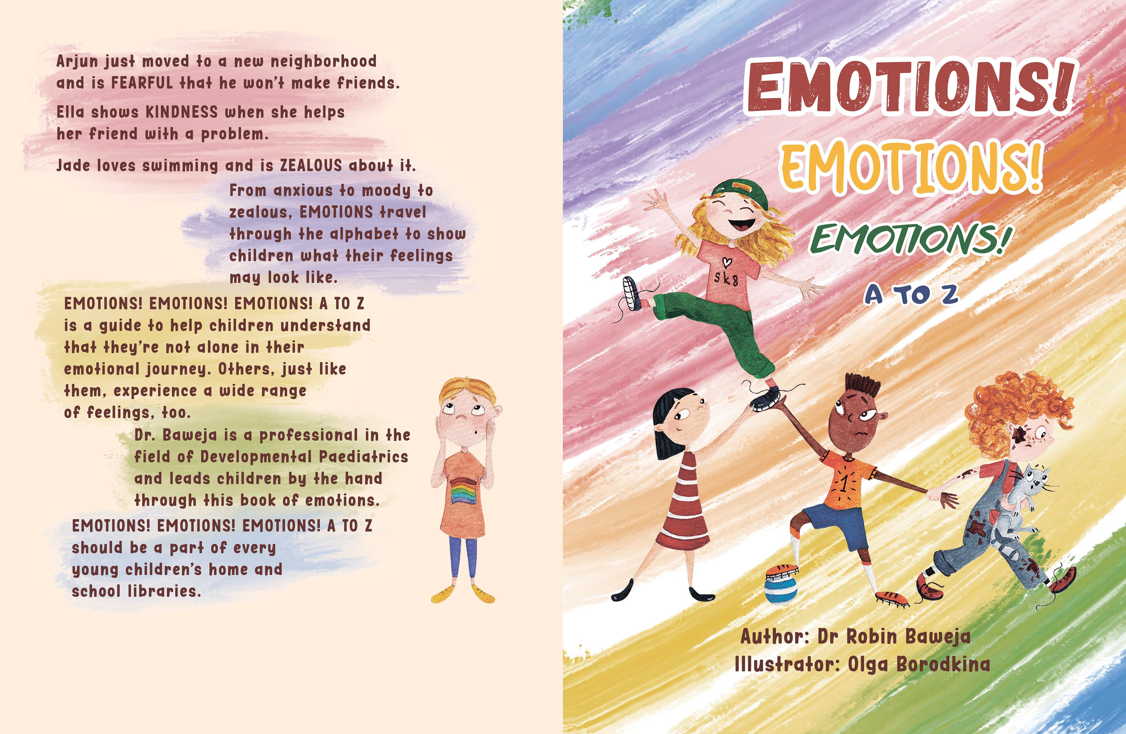 EMOTIONS! EMOTIONS! EMOTIONS! A TO Z is a guide to help children understand that they’re not alone in their emotional journey. Others, just like them, experience a wide range of feelings, too. From anxious to moody to zealous, EMOTIONS travel through the alphabet to show children what their emotions may look like.