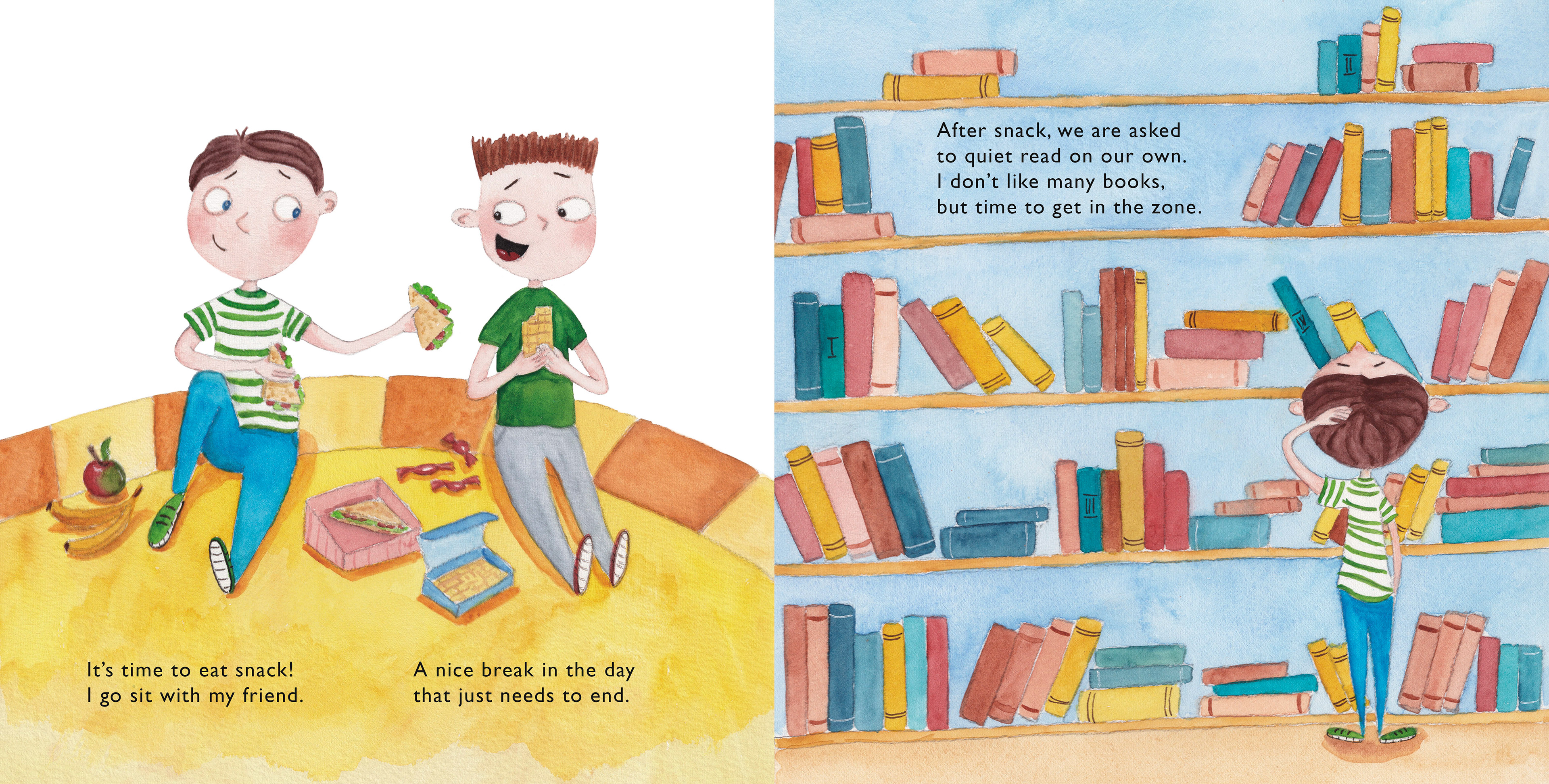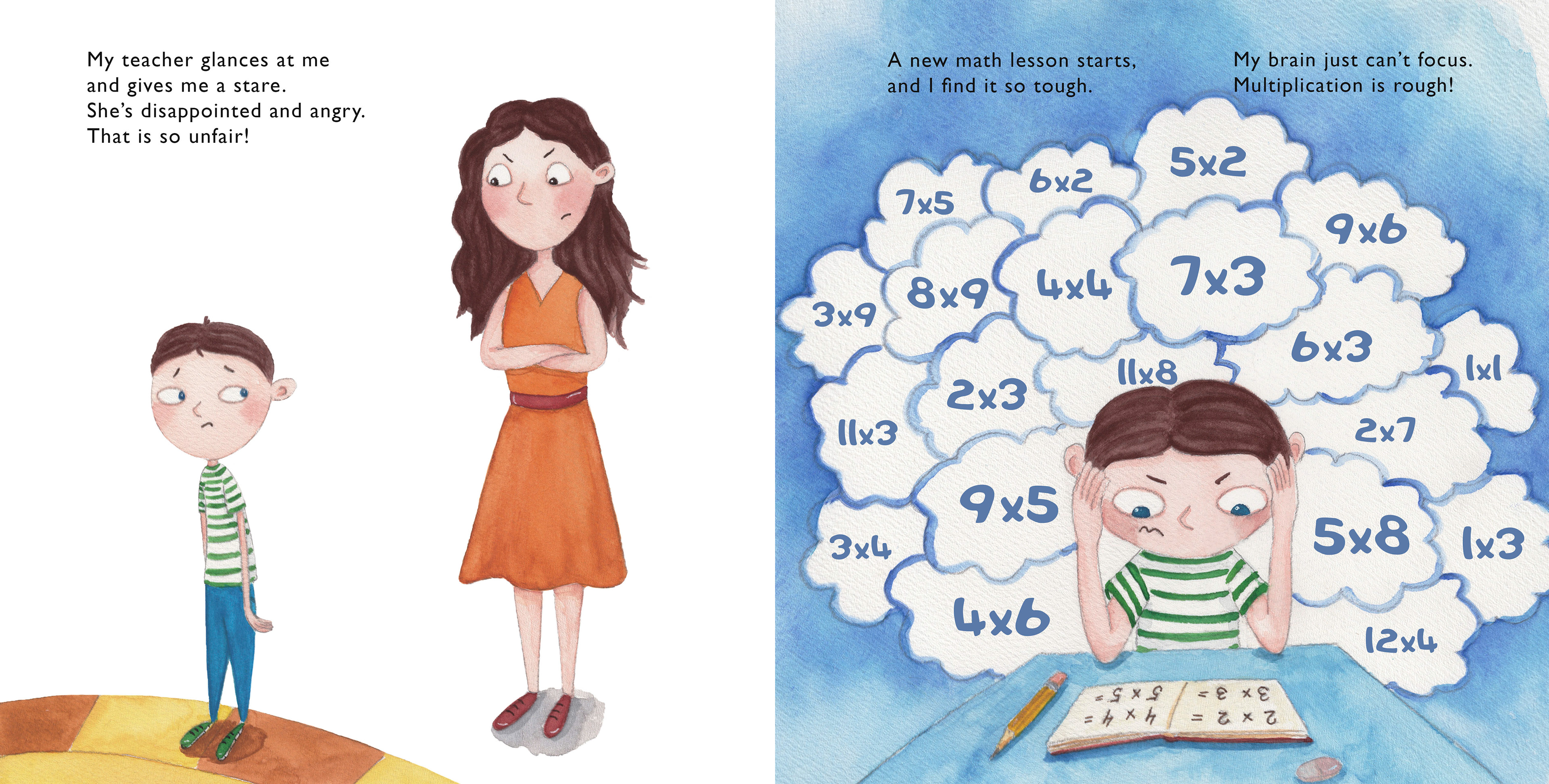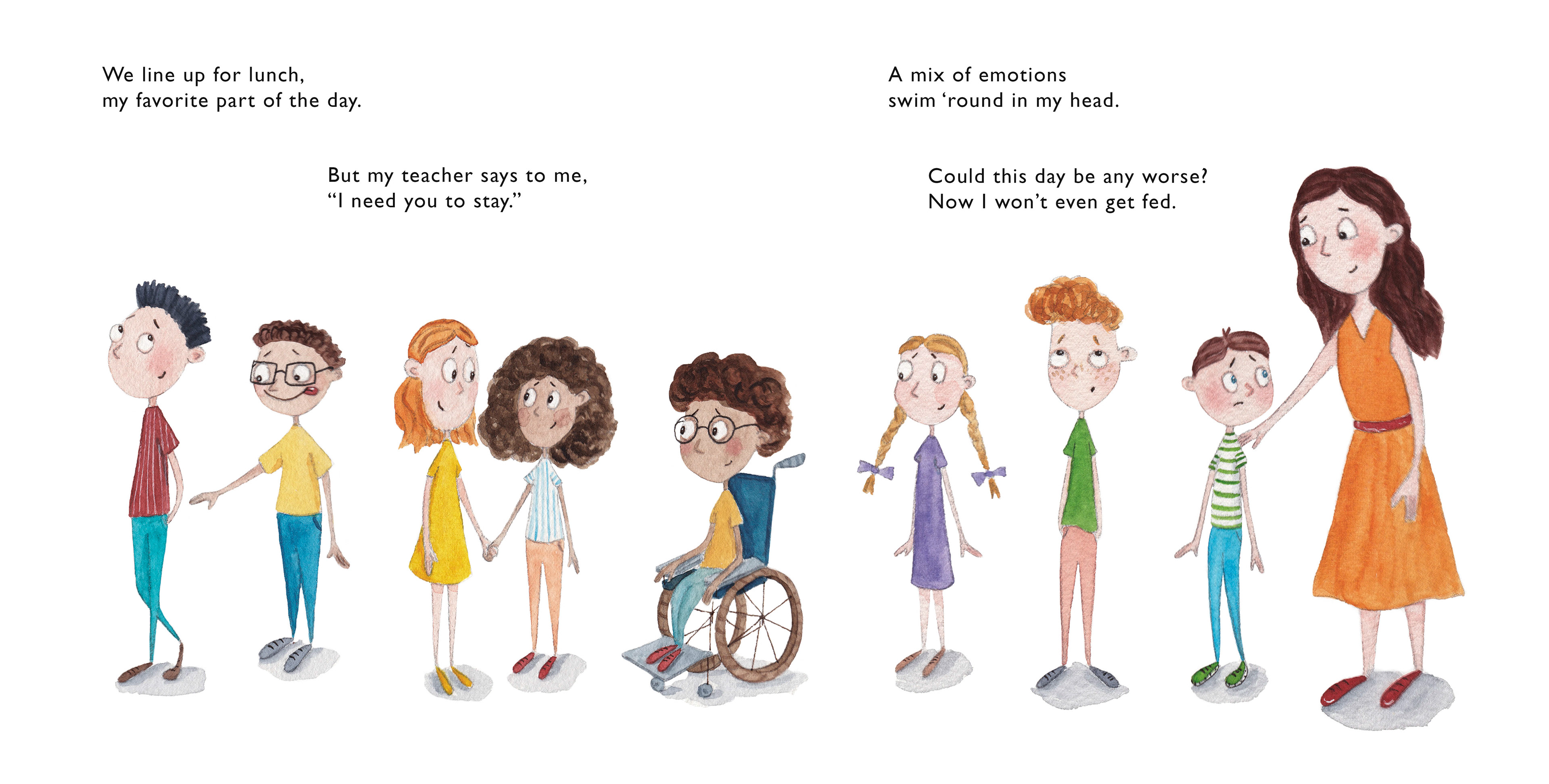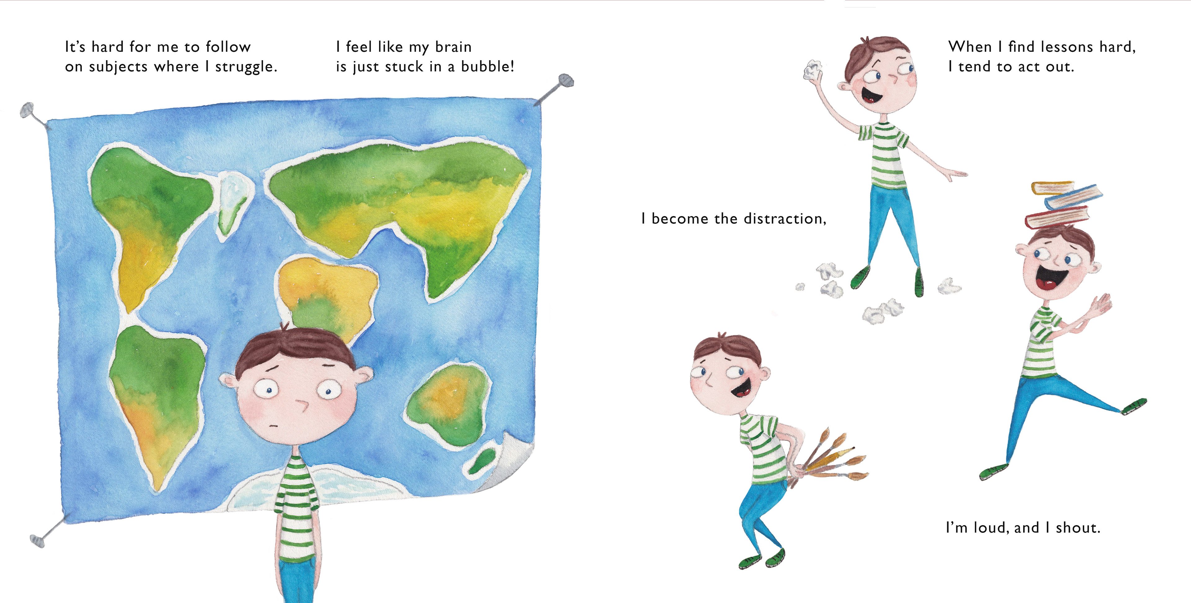 The main character of the book has ADHD and often acts out during lessons disturbing other students and interrupting the learning process. During reading time he writes a note which says My teacher doesn't like me and passes it around. His teacher then finds it and asks him to stay after lessons to talk.